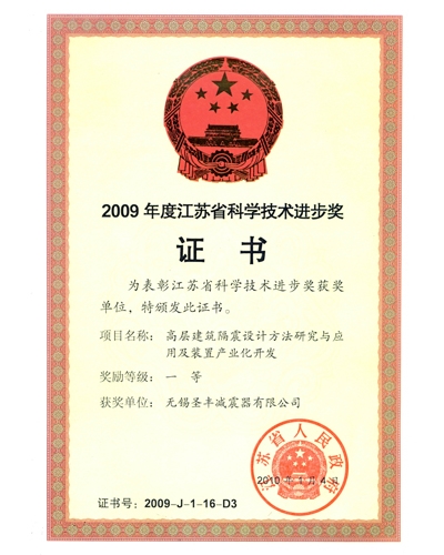Home > Honor > 2009年江苏省科技进步一等奖证书